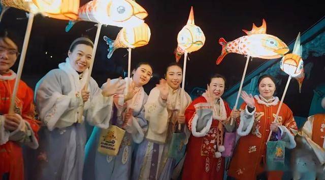 非遗鱼灯与舞龙队伍交织时而列队巡游、时而辗转穿行光影流转间复刻了“一夜鱼龙舞”的中式盛景