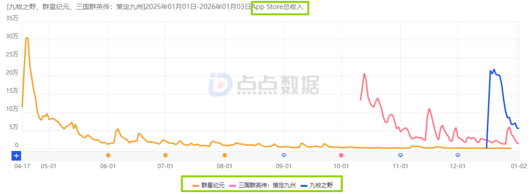 值得关注的是,虽然冲击头部经典产品难度明显,但若将其放在今年国内公测的SLG新游中,《九牧之野》的成绩还是可圈可点的。