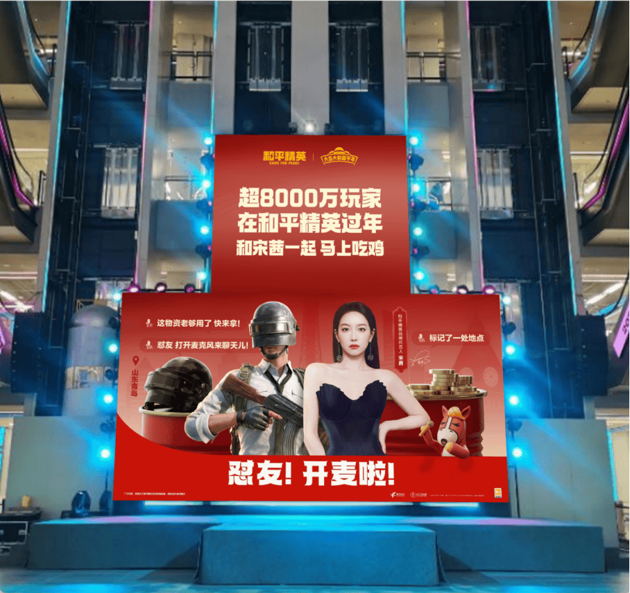 游戏外,以“回家,马上吃鸡”为营销主张,《和平精英》全新品牌代言人吴磊、田曦薇先后拍摄了马年春节版本TVC;代言人华晨宇领衔的新春全明星直播周,实时公布房号与粉丝玩在一起,共同为游戏新春版本带来了强流量和曝光加持。