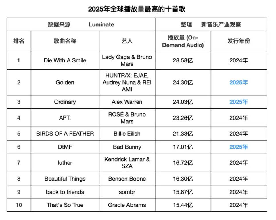 2026-02-21百家乐,百家乐官方网站,百家乐APP下载,百家乐游戏平台,百家乐网址,百家乐试玩,百家乐的玩法,百家乐技巧,百家乐公式,百家乐打法,百家乐电子,21点,德州扑克,快三,pk10,时时彩,北京赛车根据数据机构Luminate 的年终报告,2025年,全球音乐流媒体播放量达到了5.1万亿次,比2024年增长近10%,创下历史新高。全球音乐平台上获得ISRC编码的歌曲就多达2.53亿首,比2024年新增超过5000万首。