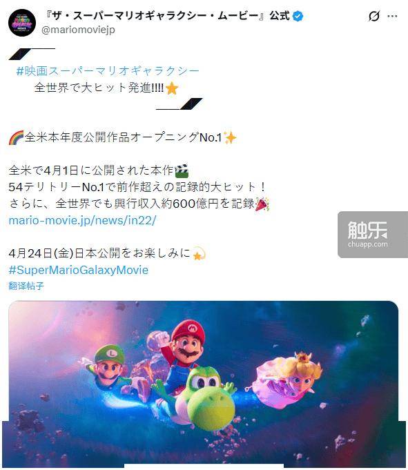 近日,任天堂官方宣布《超级马力欧银河大电影》全球累计票房已突破600亿日元(约合人民币25亿元)。